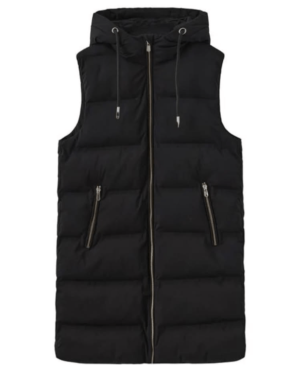 - Construction/Design: A sleeveless longline gilet with a thigh-length cut for added coverage. Features a classic quilted pattern, front zip closure, and side pockets for convenience.