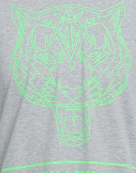 Brand logo, solid color with print, round collar, short sleeves, no pockets, stretch